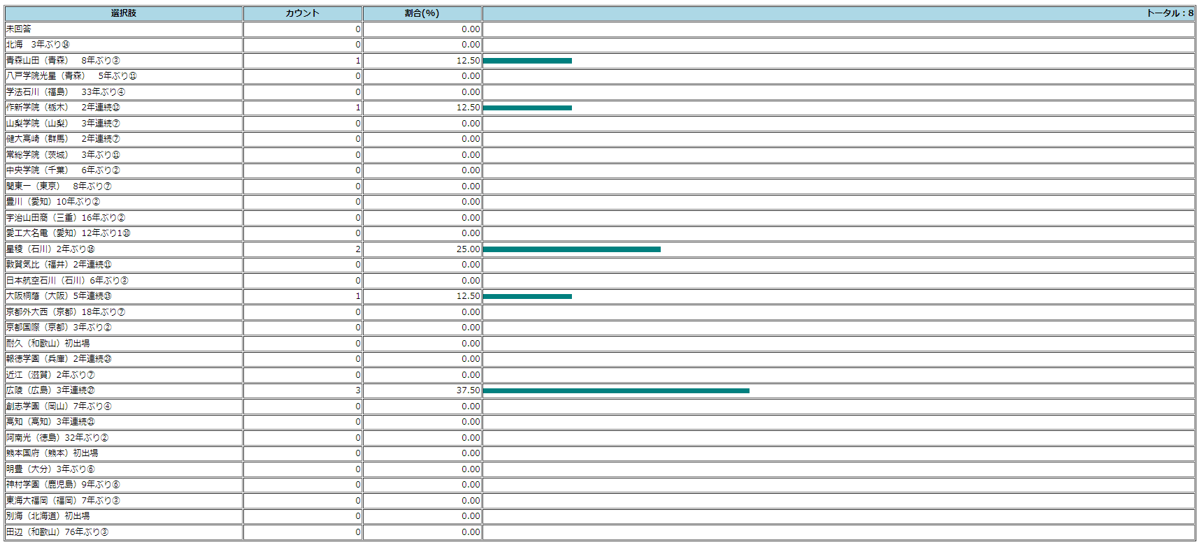 第96回選抜高校野球大会 優勝予想投票途中経過